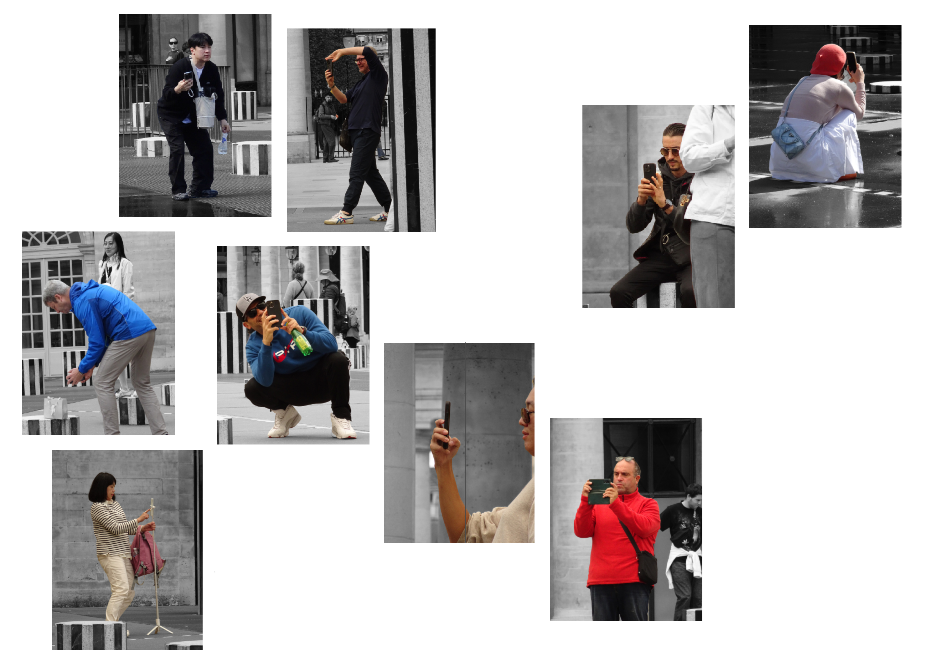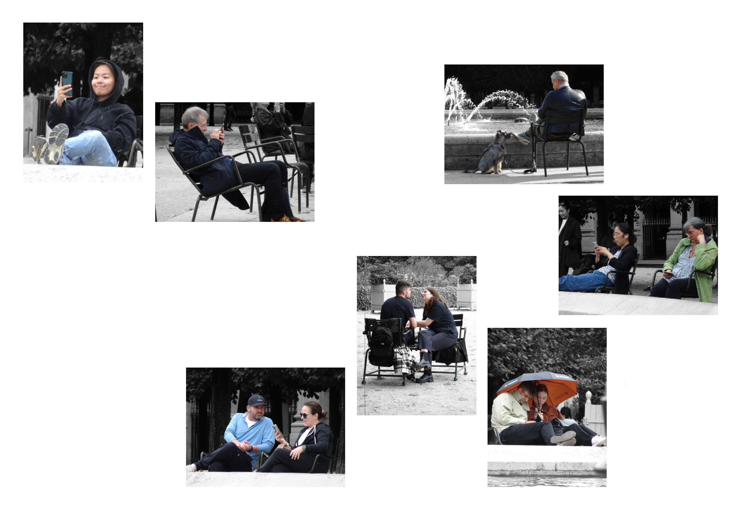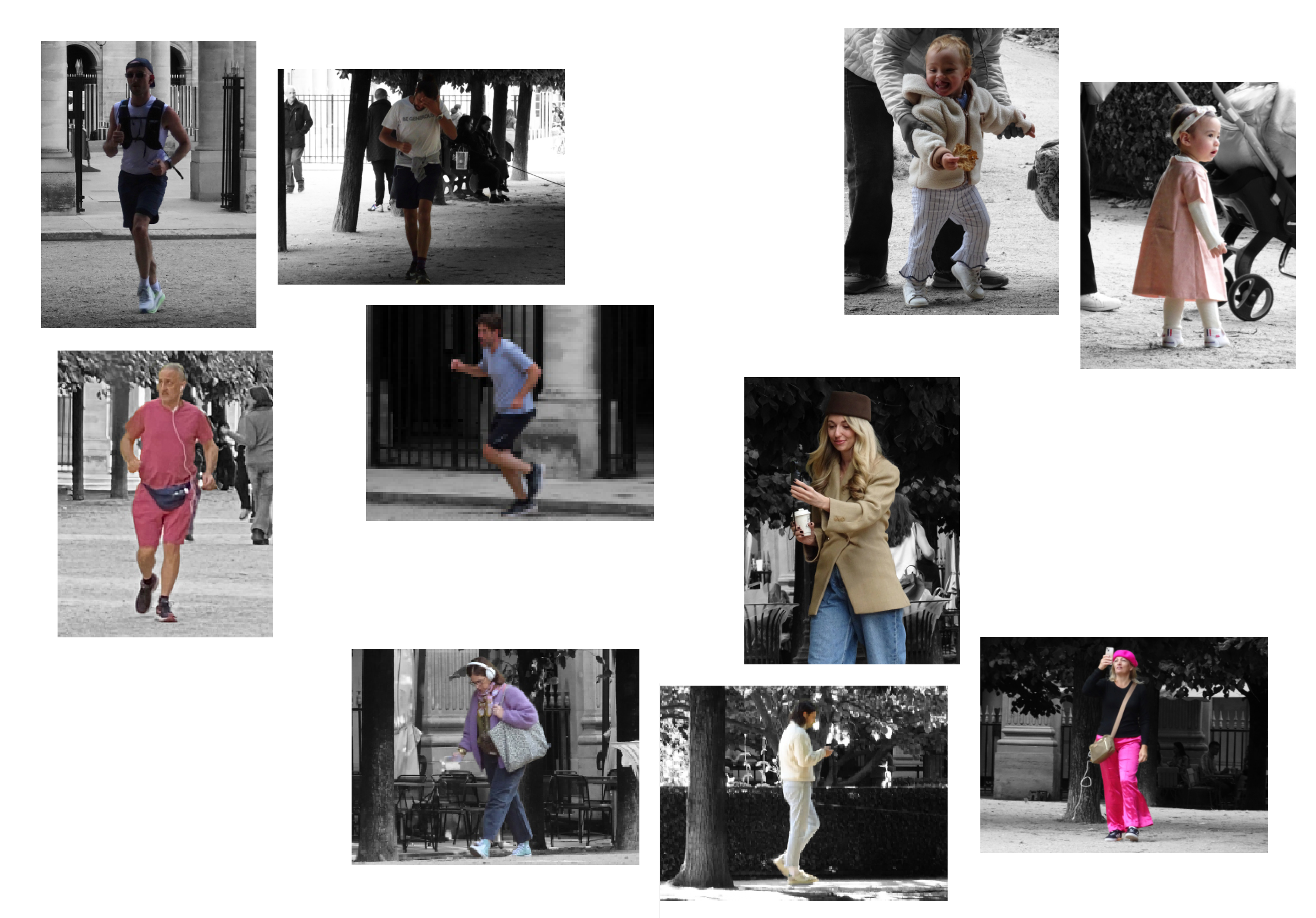 In the Jardin du Palais Royal, paths become lines, gestures become signs, movements become emotions. I observe how people draw the space with steps, glances and fleeting encounters. Their rhythm speaks of proximity and distance, of calm and restlessness. From these moments emerges a visual study of movement and perception.