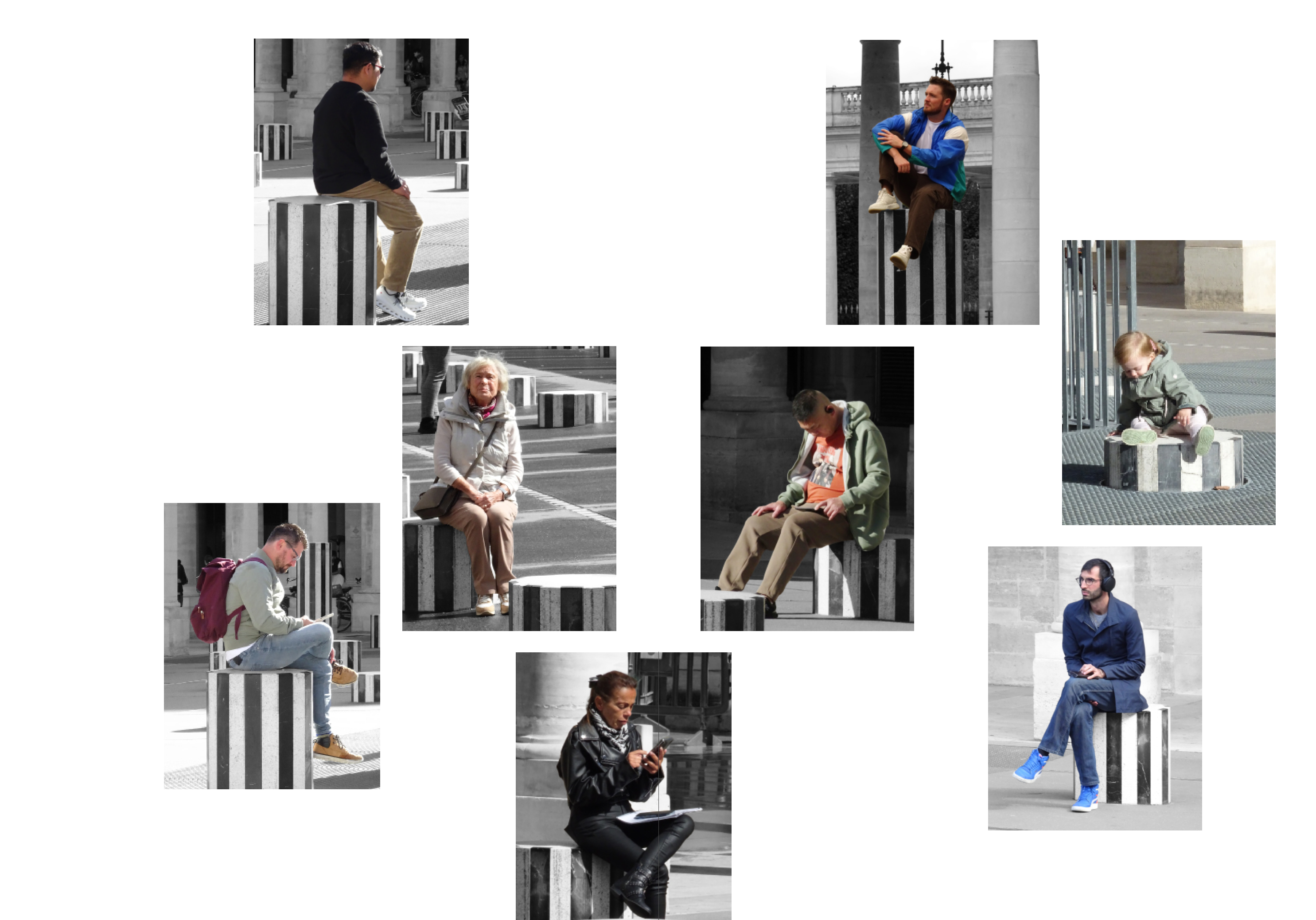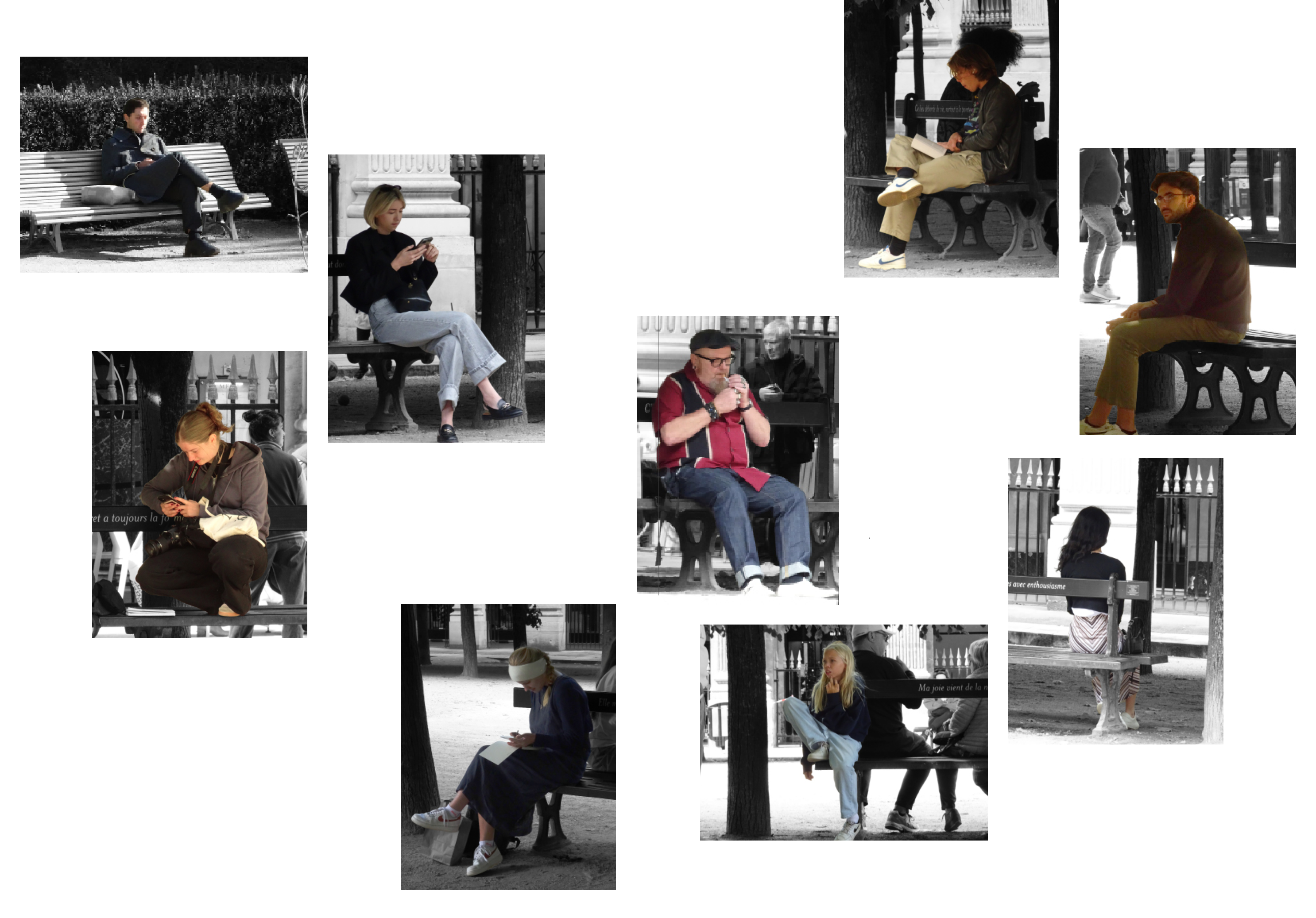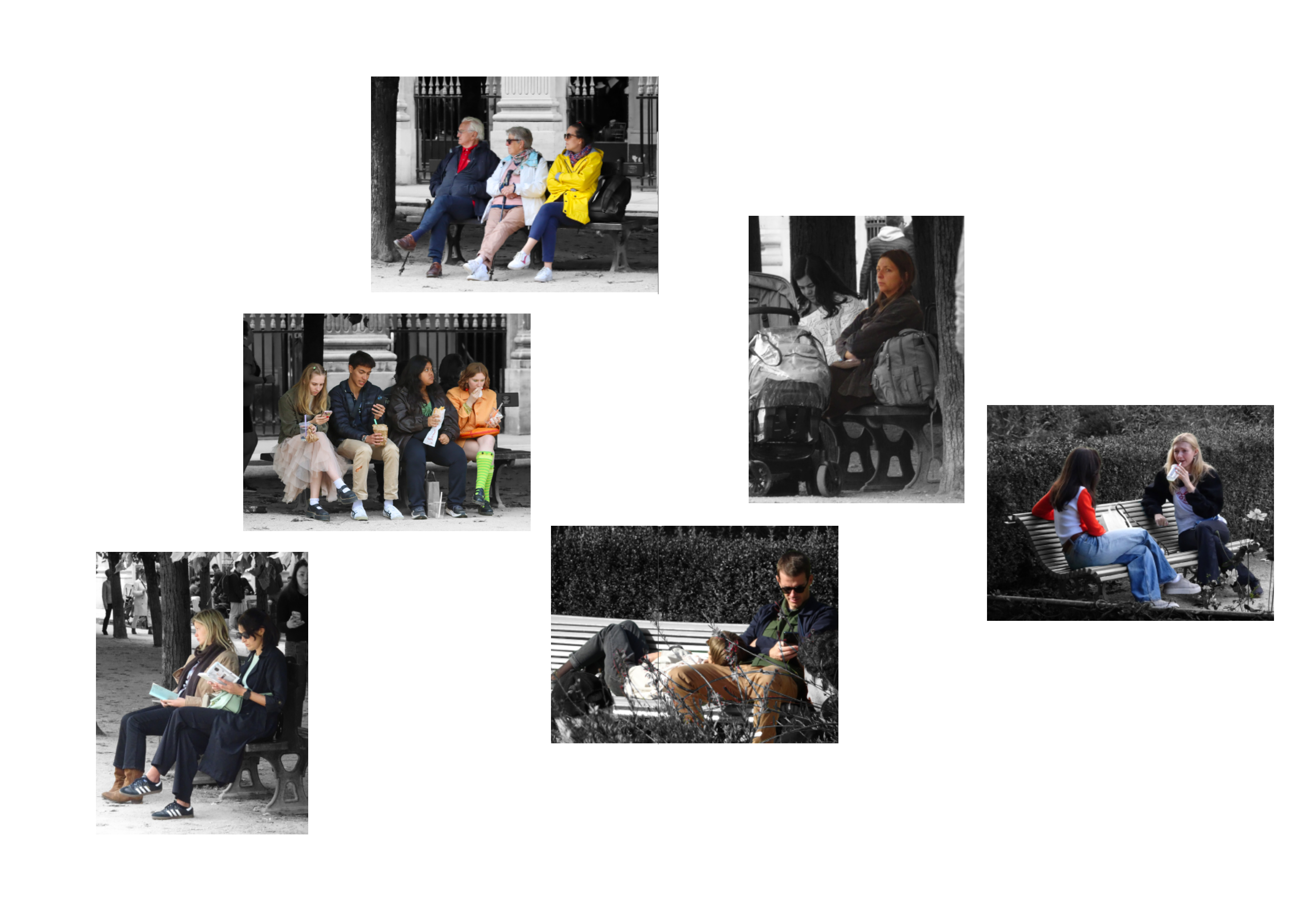In the Jardin du Palais Royal, paths become lines, gestures become signs, movements become emotions. I observe how people draw the space with steps, glances and fleeting encounters. Their rhythm speaks of proximity and distance, of calm and restlessness. From these moments emerges a visual study of movement and perception.