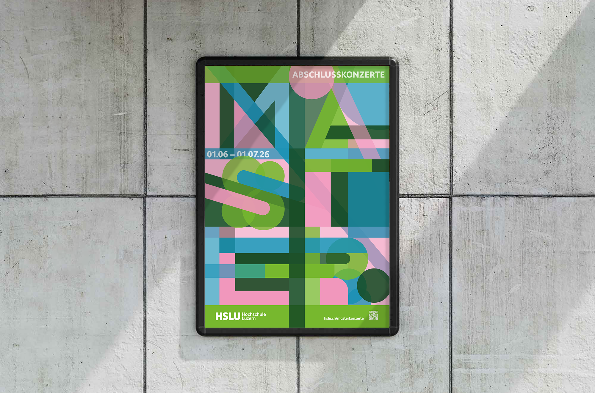 Movement becomes line, melody becomes colour, harmony becomes form. Through the layering of shapes, words emerge whose colours carry emotions and work together harmoniously. The poster translates what one hears and feels into a visual language. In the animation, the idea is expanded: letters build up, chapters close, a graphic conclusion inspired by the end of studies and the beginning of a new chapter.Bewegung wird zu Linie, Melodie zu Farbe, Harmonie zu Form. Durch das Übereinanderlegen von Formen entstehen Wörter, deren Farben mit Emotionen verbunden sind und harmonisch miteinander wirken. Das Plakat übersetzt, was man hört und fühlt, in eine visuelle Sprache. In der Animation wird die Idee erweitert: Buchstaben bauen sich auf, Kapitel schliessen sich,ein grafischer Abschluss, inspiriert vom Ende des Studiums und dem Beginn eines neuen Kapitels.