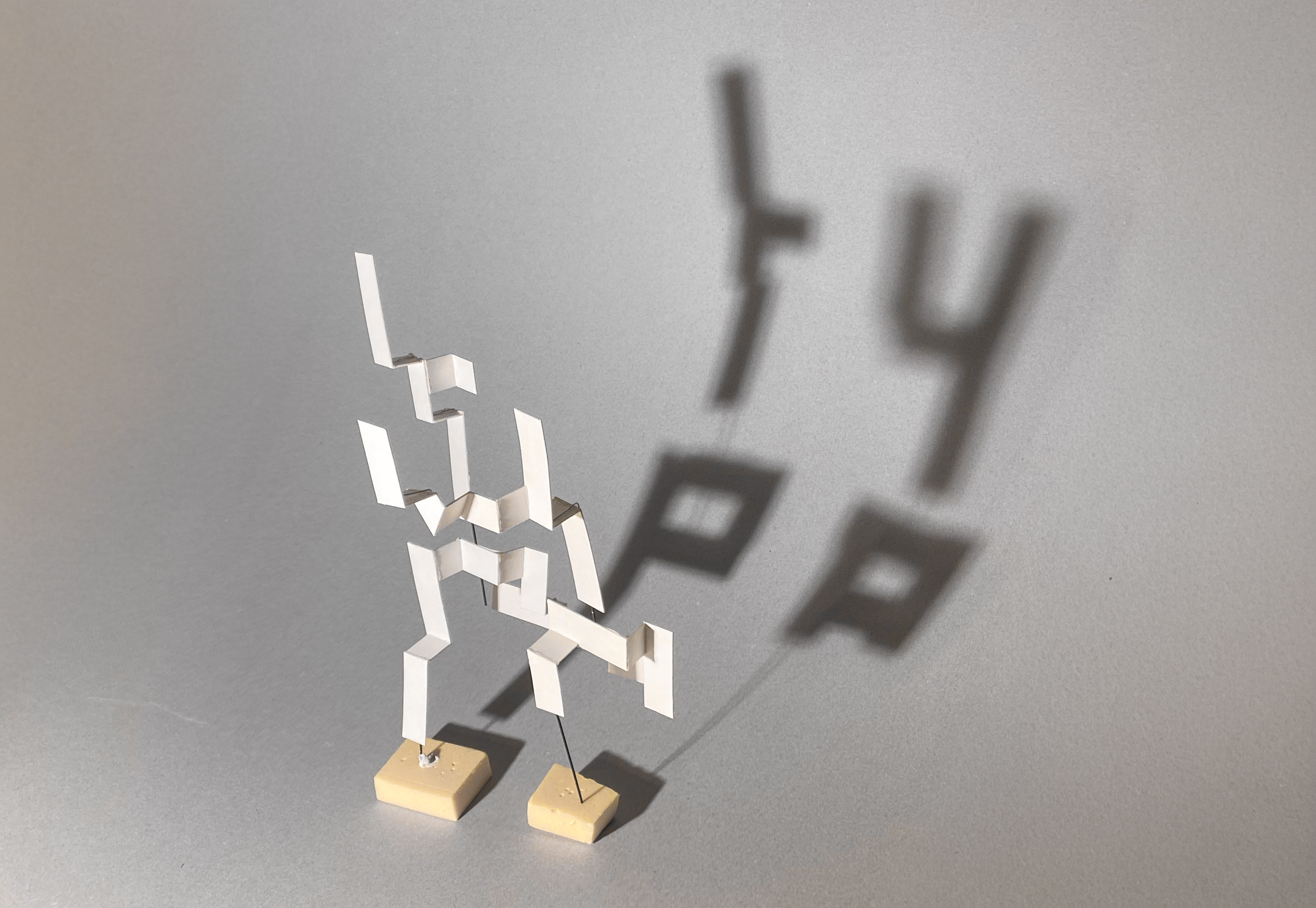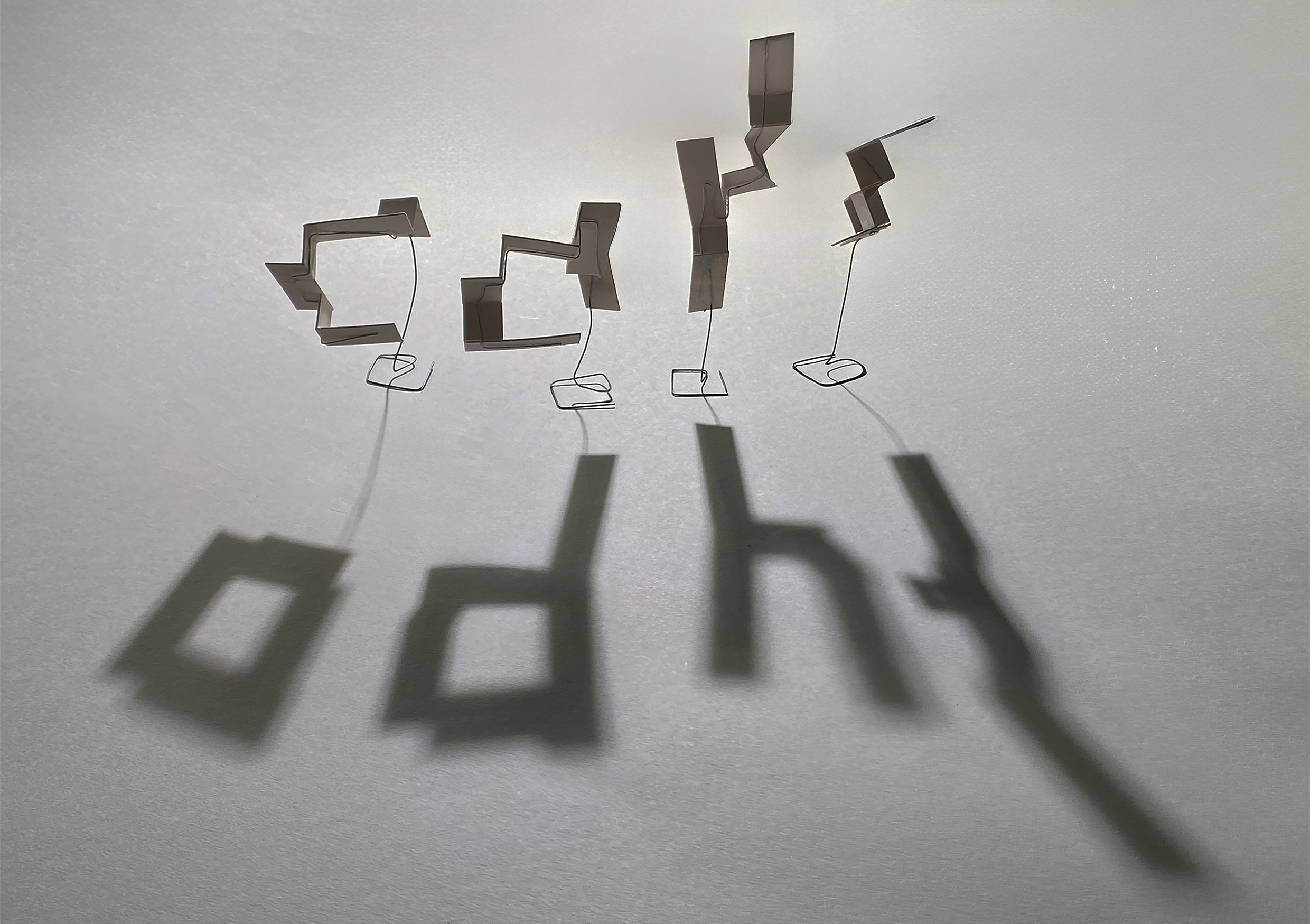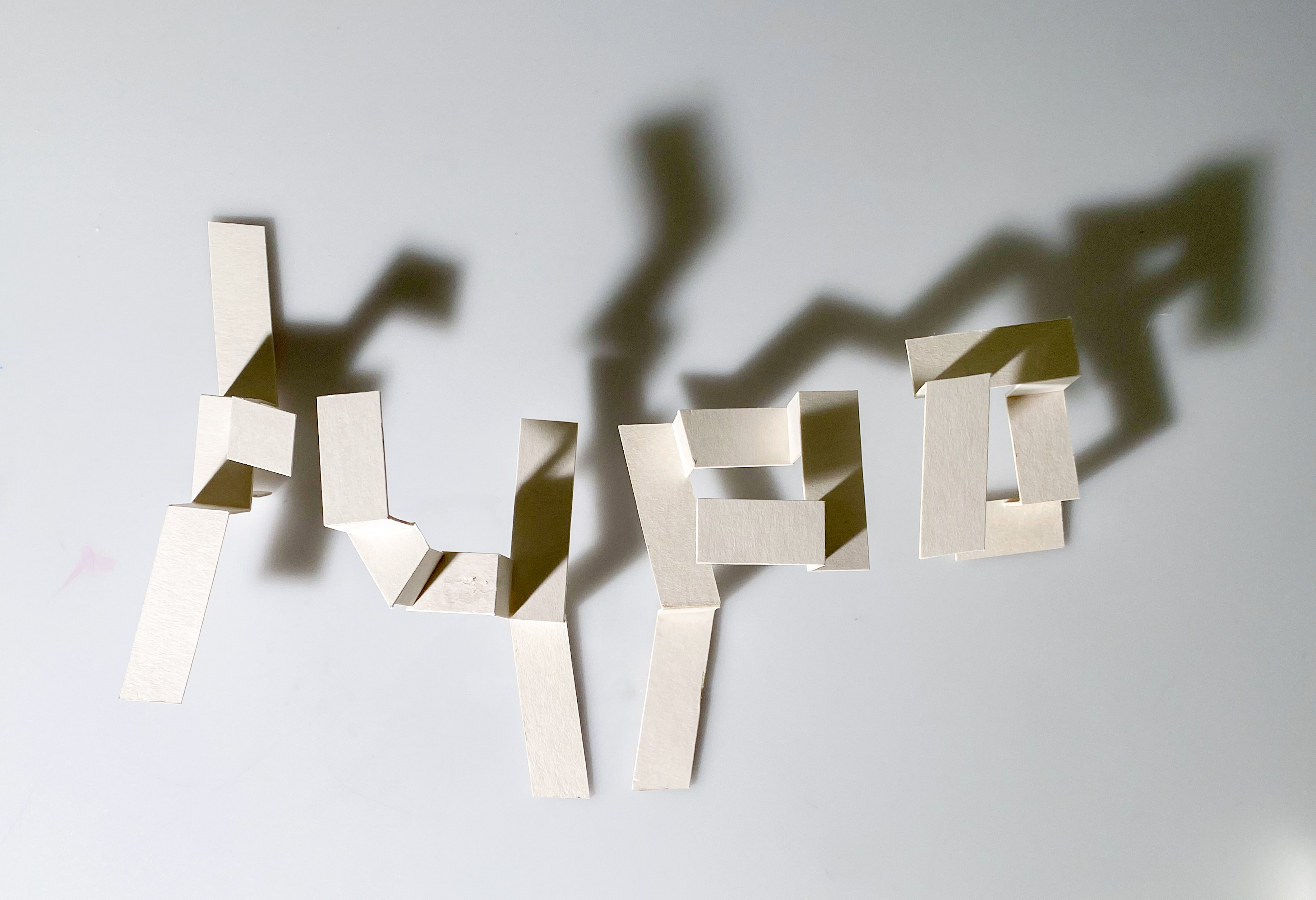 This project focused on developing three-dimensional letter sculptures using cardboard and wire. The physical construction demanded a deep understanding of materiality to stabilise the fragmented, geometric forms. The subsequent photography became a discipline of lighting technique and perspective control. Through shadows and deliberate light accents, the volume and texture of the pale forms were emphasised. The series explores how the chosen perspective dynamises the perception of static objects within space.